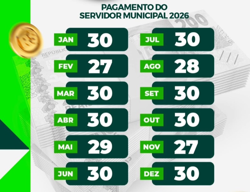 Como compromisso de fortalecer o desenvolvimento das políticas públicas voltadas ao funcionalismo, a Secretaria de Finanças de Serra Negra do Norte divulgou, nesta última semana, o calendário anual de pagamento dos servidores públicos.